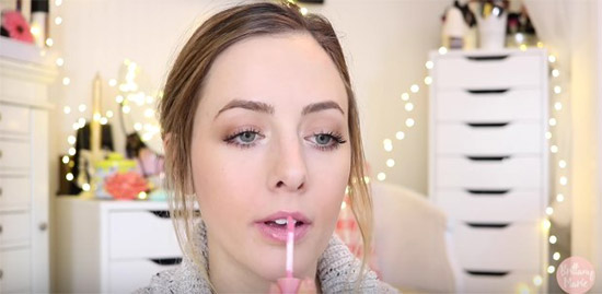 5. มาถึงขั้นตอนทาลิปกันแล้วให้เลือกใช้ลิปกลอสโทนสีชมพู ใบหน้าดูหวานมากแต่ก็ยังดูเป็นธรรมติด้วย
