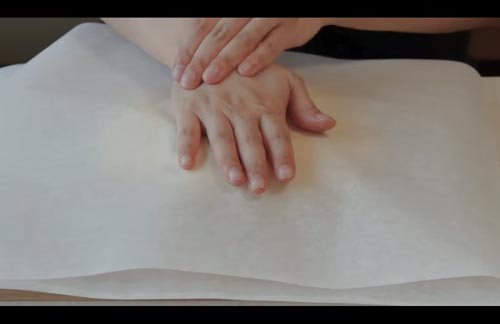 วางกระดาษรองทับด้านบน เอามือนวดๆให้แบน