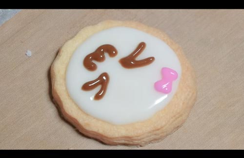 ไปที่น้ำตาลไอซิ่ง ให้ใส่ไข่ขาวที่เตรียมไว้ทั้งหมดลงหม้อปั่น ปั่นไปสักแปปให้หยุดเครื่องก่อน ให้ใส่ครีมออฟทาร์ทาร์ที่เตรียมไว้ลงไป แล้วตีต่อจนกว่าจะฟูขาว พอฟูแล้วให้ค่อยๆใส่น้ำตาลที่เตรียมไว้ลงไป เทจนกว่าจะหมด ปั่นต่อเนื่องจะกว่าจะเข้ากันแล้ว พอเสร็จแล้วให้ไปที่สีกับถ้วย เตรียมถ้วยย่อยๆไว้เอามาแยกผสมสีแต่ละสี ผสมสีที่ต้องการเสร็จแล้วให้ไปที่ถุงที่จะใช้บีบ ใส่ครีมลงถุงบีบให้พร้อม ตัดจุกถุงให้เล็กที่สุดจะได้ง่ายต่อการวาดเป็นรูปร่าง