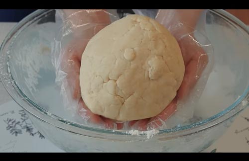 ใส่แป้งเสร็จแล้วให้ใช้มือนวดเลย เต็มที่ ใส่ถุงมือด้วยเพื่อความสะอาด