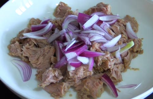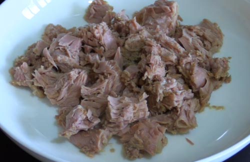 เทเนื้อทูน่าใส่จานไปเอาน้ำทูน่า