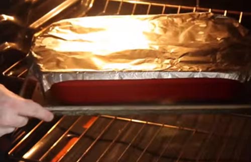 ห่อฟอล์ยแผ่นแล้วเอาเข้าเตาอบ อบด้วยไฟ 220 องศา 25 นาที