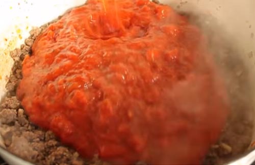 ใส่มะเขือเทศบดกับมะเขือเทศกระป๋อง