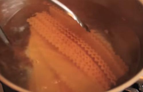 เอาแผ่นลาซานญ่ามาต้มในน้ำเดือด