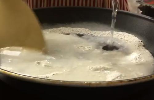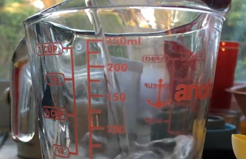 เทน้ำให้ถึง 180 มิลลิลิตรก่อนเอาไปใส่กระทะ