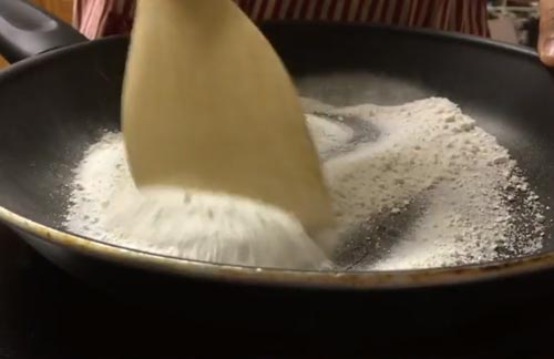 คั่วแป้งจนกว่าจะเหลือง คั่วให้ทั่วๆ
