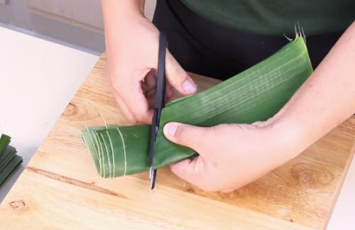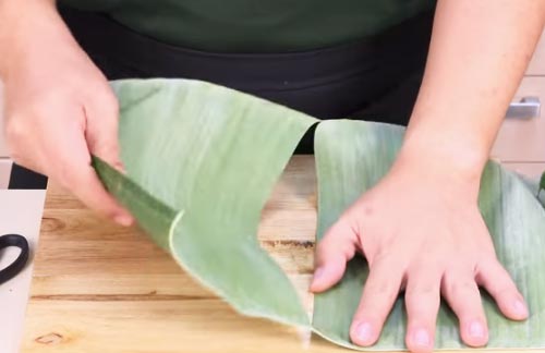 ตัดมุมใบตองทั้งสองข้างให้เท่าๆกัน