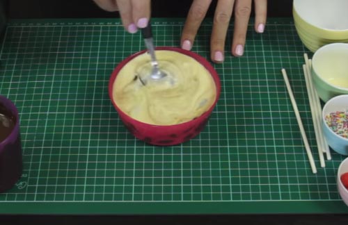 เอาปลายไม้จุ่มช็อคโกแลตดิบ