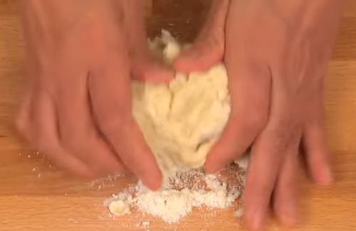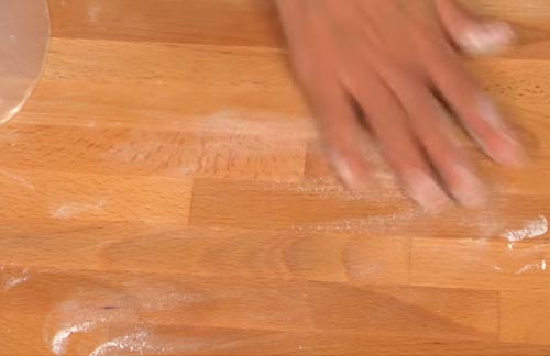 พอเริ่มก่อตัวเป็นก้อนแล้วให้วางบนพื้นนวดเลย