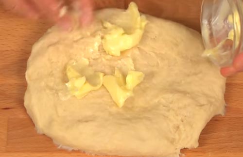 พอเนียนแล้วให้ใส่เนยลงไปแล้วนวดๆปั้นๆเป็นก้อนกลม