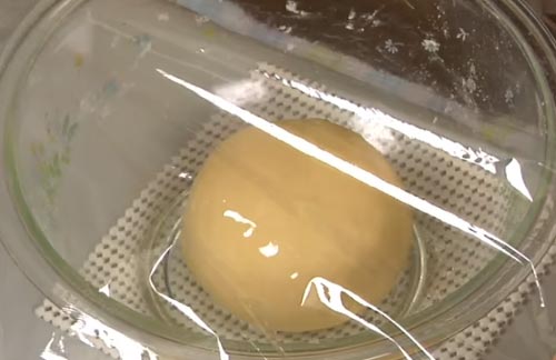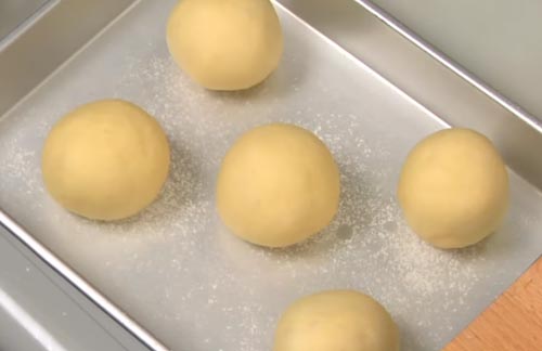 ชั่งเสร็จปั้นเป็นก้อนกลมๆวางในถาด แล้วหุ้มถุงไว้
