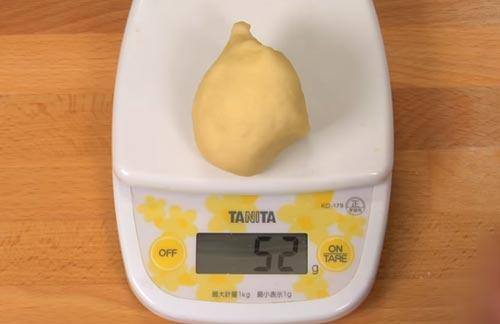 นวดเสร็จตัดแป้งชั่งกิโลให้ได้ 52 กรัม