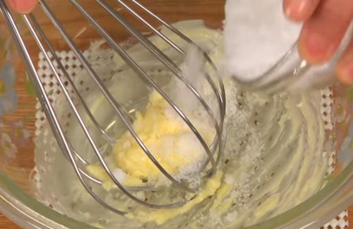 เริ่มจากทำแป้งคุ้กกี้ นำเนยมาตีก่อนเลยตีให้เนยกระจายตัวออก