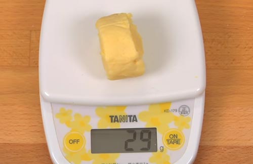นำแป้งคุ้กกี้ออกจากตู้เย็น ตัดชั่งกิโลให้ได้ 29 กรัม แหม่จะ 30 ไปเลยก็ไม่ได้ ห้าๆ