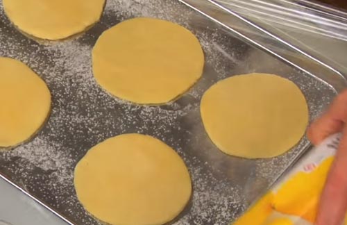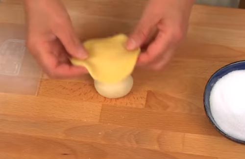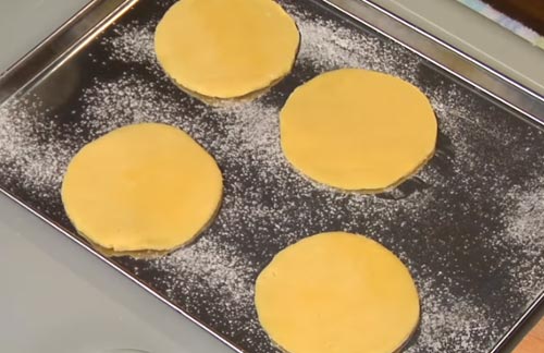 ปั้นเป็นก้อนกลมแล้วบีบให้แบน