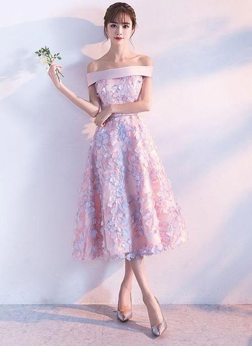 ชุดราตรียาวหรูน่ารักๆงานปักสวยเก๋ ผ้ายาวคลุมเข่า โชว์ไหล่เนียนๆยิ่งใส่ชุดไปงานแต่งแบบนี้ใครเห็นก็ต้องอยากทำความรู้จักแน่นอน