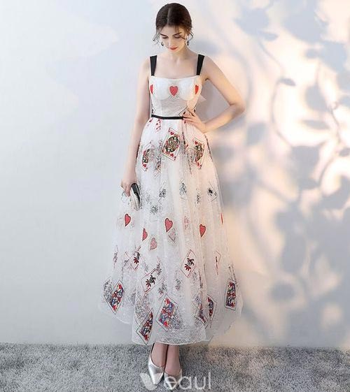 ชุดราตรียาวสีขาวขอบดำประดับลายสวยๆก็เป็นตัวเลือกที่ดีนะคะ