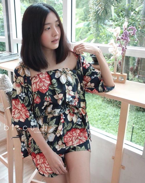 ชุดฮาวายน่ารักๆลายดอกติดกางเกงแบบขาสั้นมีเสื้อคลุมพร้อมลายเดียวกันยกเซ็ทดูสวยแบบชิวๆดีค่ะ
