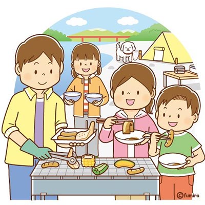 ภาพวาดการ์ตูนครอบครัวสุขสันต์กำลังรับประทานข้าวกันอย่างเอร็ดอร่อย