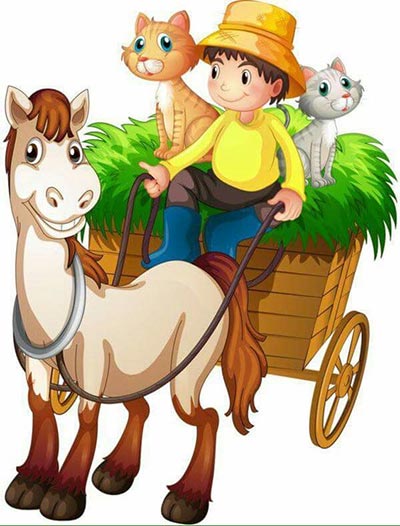 โอ้ยน่ารักอ่ะรูปวาดการ์ตูนชาวนามีน้องม้าและแมวอีกสองตัว