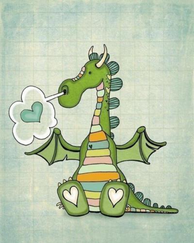 ภาพวาดมังกรการ์ตูนเขียวมาอีกแล้ว ลองดูที่อุ้งเท่าจิมีรูปหัวใจด้วย