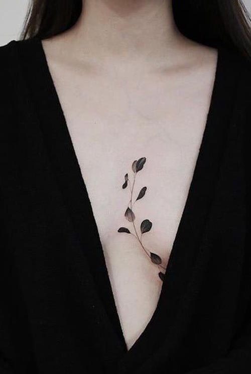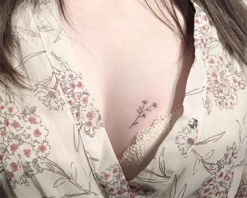 ลายสักหน้าอกข้างเดียวลายก้านดอกไม้อันเล็กๆน่ารักดีจ้า