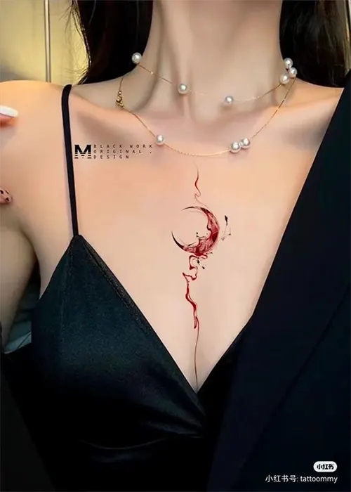 ลายสักหน้าอกผู้หญิงสวย เท่ ข้างเดียว เล็กๆ ญี่ปุ่น
