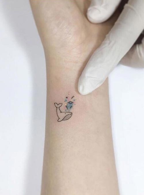 รูปปลาโลมาพ่นน้ำมีสักเป็นลายดาวผสมกันได้แบบน่ารักดี