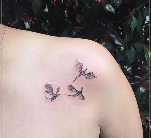 รูปค้างคาวทั้งสามตัวสักที่ไหล่อย่างแจ่ม