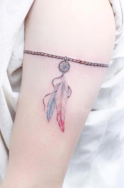 รูปเชือกมีขนนกห้อยด้วย เป็นภาพเชือกที่ดูเหมือนคล้องรอบต้นแขนเลย อย่างน่ารักอ่าเก๋นะแนวนี้