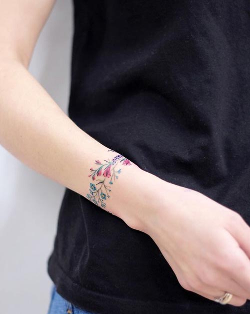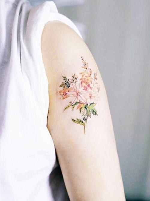 รูปดอกไม้หลากสีดอกเล็กรอบแขนดูสวยแบบเรียบง่ายดีด้วย