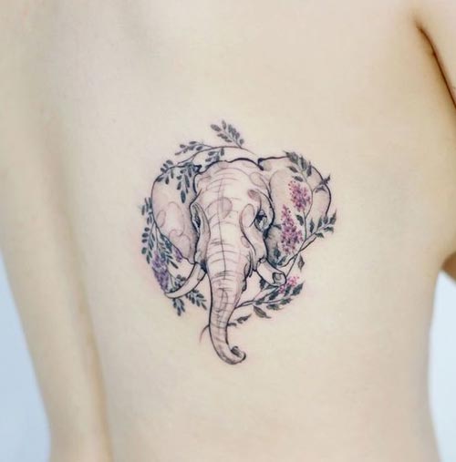 ภาพใบหน้าช้าง แต่งด้วยลายดอกไม้และก้านใบล้อมประดับช้าง ดูดีอ่า