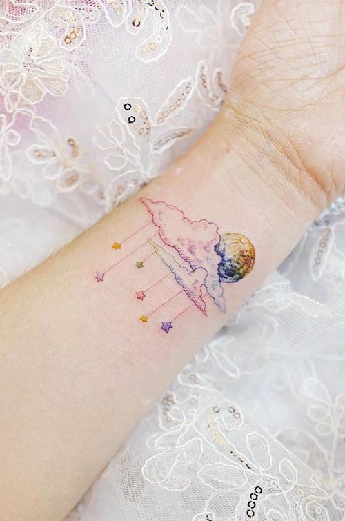 หลากสีรูปก้อนเมฆ ดาวและดวงจันทร์ รวมๆแล้วฟรุ้งฟริ้งมาก