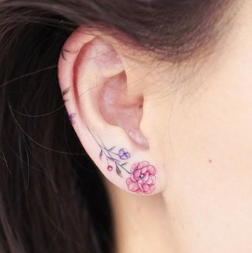 แบบสักสวยๆที่หูลายดอกไม้สีพาสเทลหวานดูอ่อนโยนดีจัง