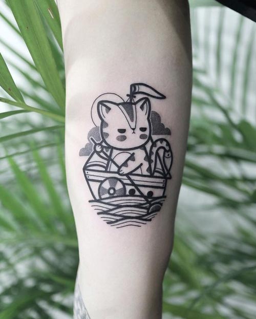 ลวดลายน่ารักอย่างภาพแมวน้อยพายเรือ มีห่วงมีปลาและก้อนเมฆในรูปดูเป็นรูปที่ดูเพลินมากเลยค่ะ