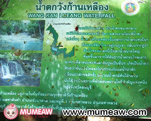 เมื่อเดินจากทางเข้ามาเรื่อยๆก่อนลงบันไดไปสู่น้ำตกก็จะพบกับป้ายคำแนะนำที่มุ๊เมี๊ยวคิดว่ามีประโยชน์และไม่อยากให้ทุกคนมองข้ามนะคะ ทั้งนี้ก็เพื่อความปลอดภัยรวมถึงการช่วยกันรักษาน้ำตกวังก้านเหลืองไว้ให้เป็นสมบัติที่มีค่าของลูกหลานรุ่นต่อๆไปด้วย